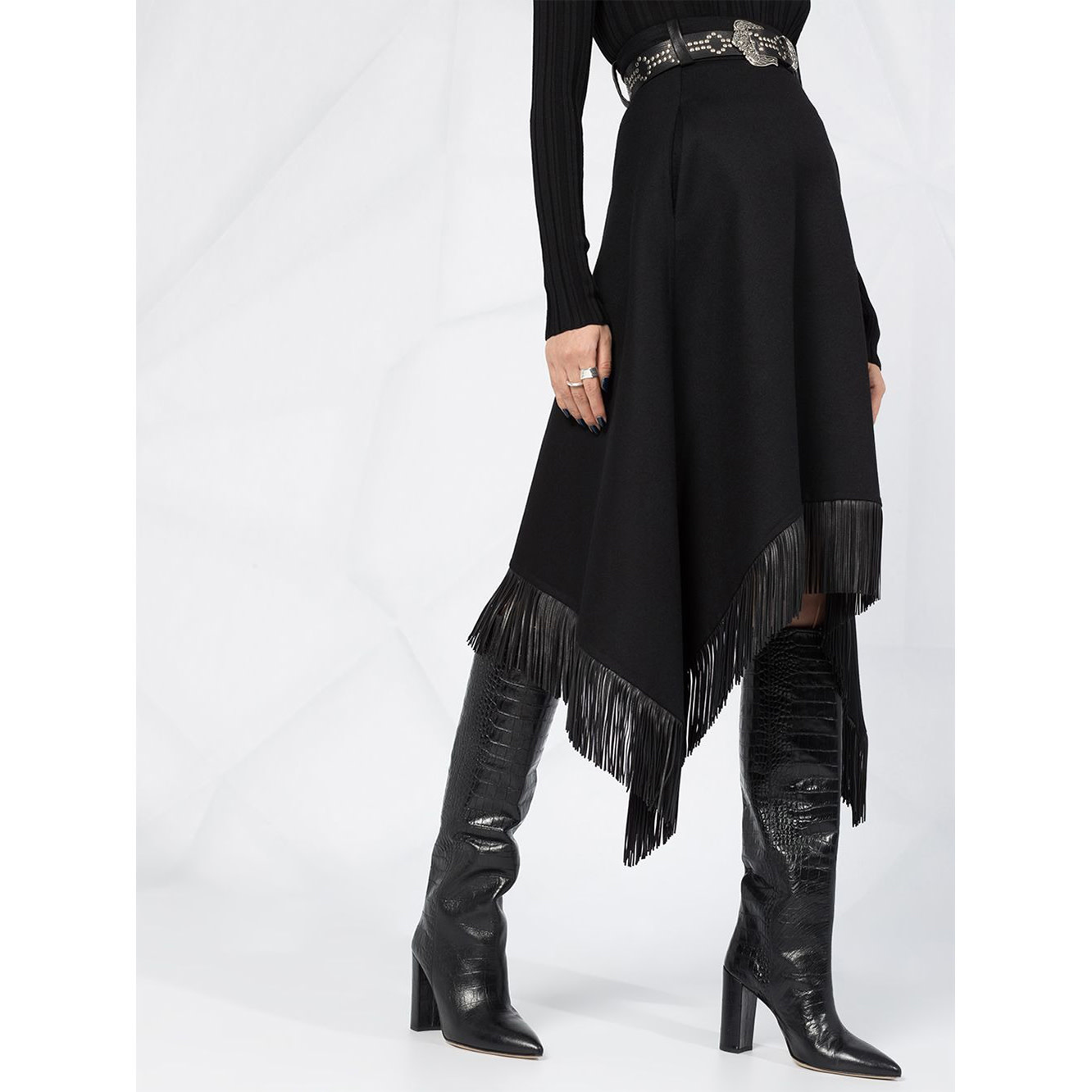 Asymmetric Fringed Skirt in Wool/Cashmere